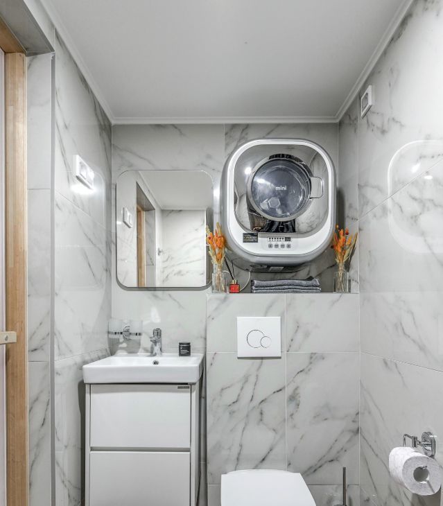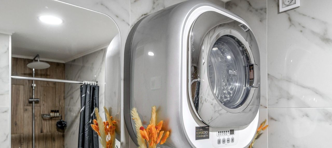 ~ небольшая стиральная машина до 3 кг белья, утюг, гладильная доска, сушилка, фен