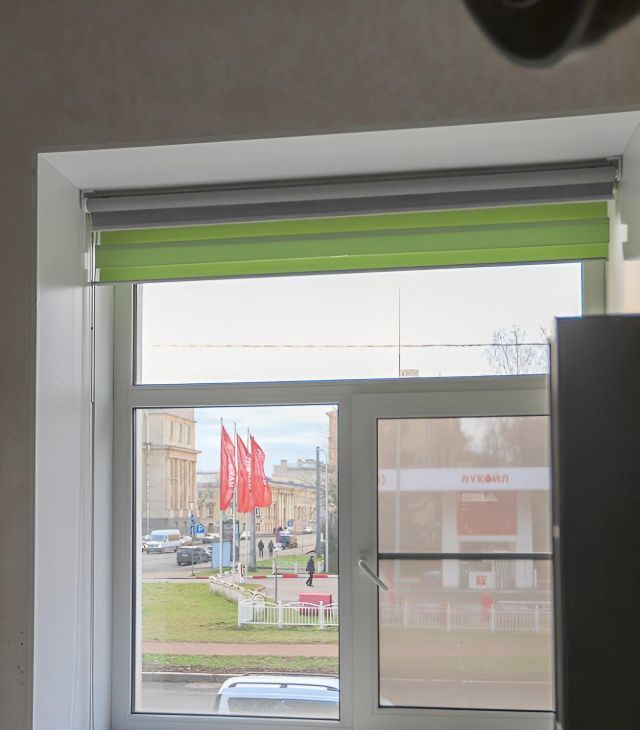 Окно большое, выходит на угол Среднего и 18 линии, Геологический музей, два вида рулонных штор: от солнца и блэкаут.