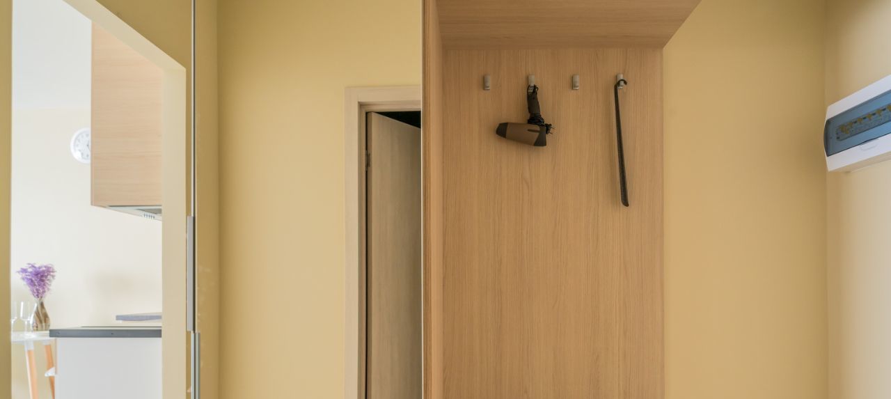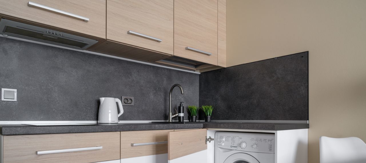 Собственный санузел, где есть душ и туалет. Стиральная машинка, утюг и фен для вашего удобства.
