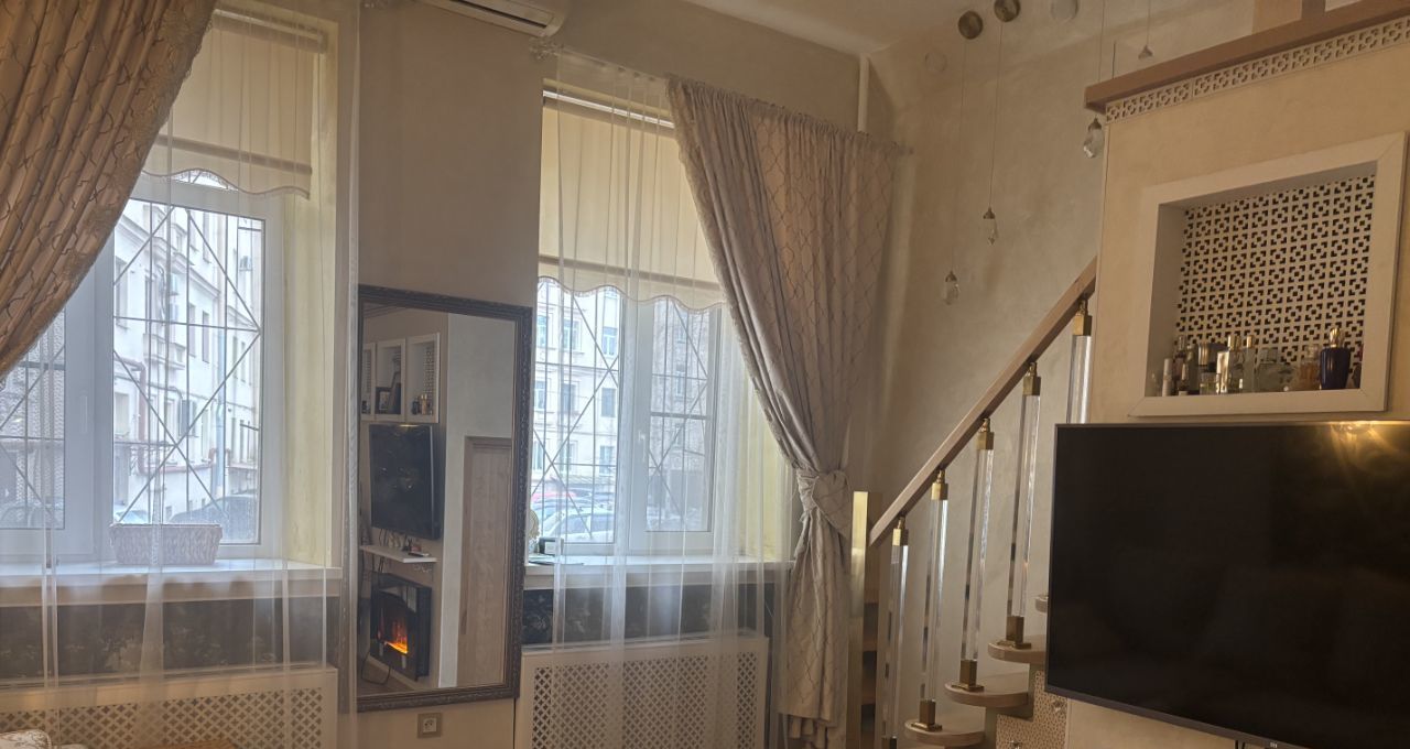 В продаже уникальная и очень особенная квартира. Это студия но к коммуналкам отношения не имеет. Отдельный вход,высокий 1этаж. На этаже одна квартира,соседи только сверху. Высота потолков 4,4. Это позволило сделать не только второй,но и третий уровень для работы,хранения вещей и сна. В квартире два больших окна,тёплые новые радиаторы. Так же теплый пол в ванной и коридоре и кухне. Свежий ремонт ,качественные материалы,сантехника,кондиционер. В квартире очень уютно,много сценариев освещения. Так же под лестницей красиво интегрированы места хранения,так же имеется гардероб,большой и вместительный. На стене в гостиной зоне нарисовано панно ручная работа. В зоне кухни встроенная техника,посудомойка,стиральная машина. Плита газовая,хорошая полноценная вытяжка и мойка стандартного размера. Квартира идеально подойдет для 1-2 человек. В гостиной остается большой диван, второй(третий) уровень тоже идеально подходит для сна и отдыха. В доме железобетонные перекрытия,соседей не слышно,окна в тихий двор,проблем с парковкой нет. Есть видеонаблюдение во дворе.Локация прекрасная-через дорогу парк 9 января. Автобусная остановка в 50 метрах от дома,метро Нарвская и Кировский завод в 10 минутах пешком. До центра города 10 минут на авто. В пешей доступности так же красивейший парк екатерингофка, шкало Зенит,не колько детских садов,поликлиника и школы. В услугах агента не нуждаюсь. Торг не уместен ,цена более чем адекватная учитывая все вышеперечисленное. Это квартира с очень удачной планировкой: потолки 4,4 м, несколько уровней, прекрасный интерьер и всего одна квартира на этаже. Тихий двор, высокие окна и ощущение уюта с первого взгляда. Приезжайте на просмотр,вам понравится !