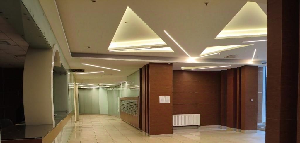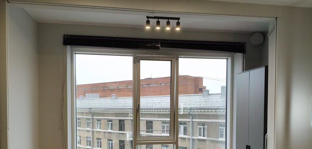Высокие потолки, очень большие окна.