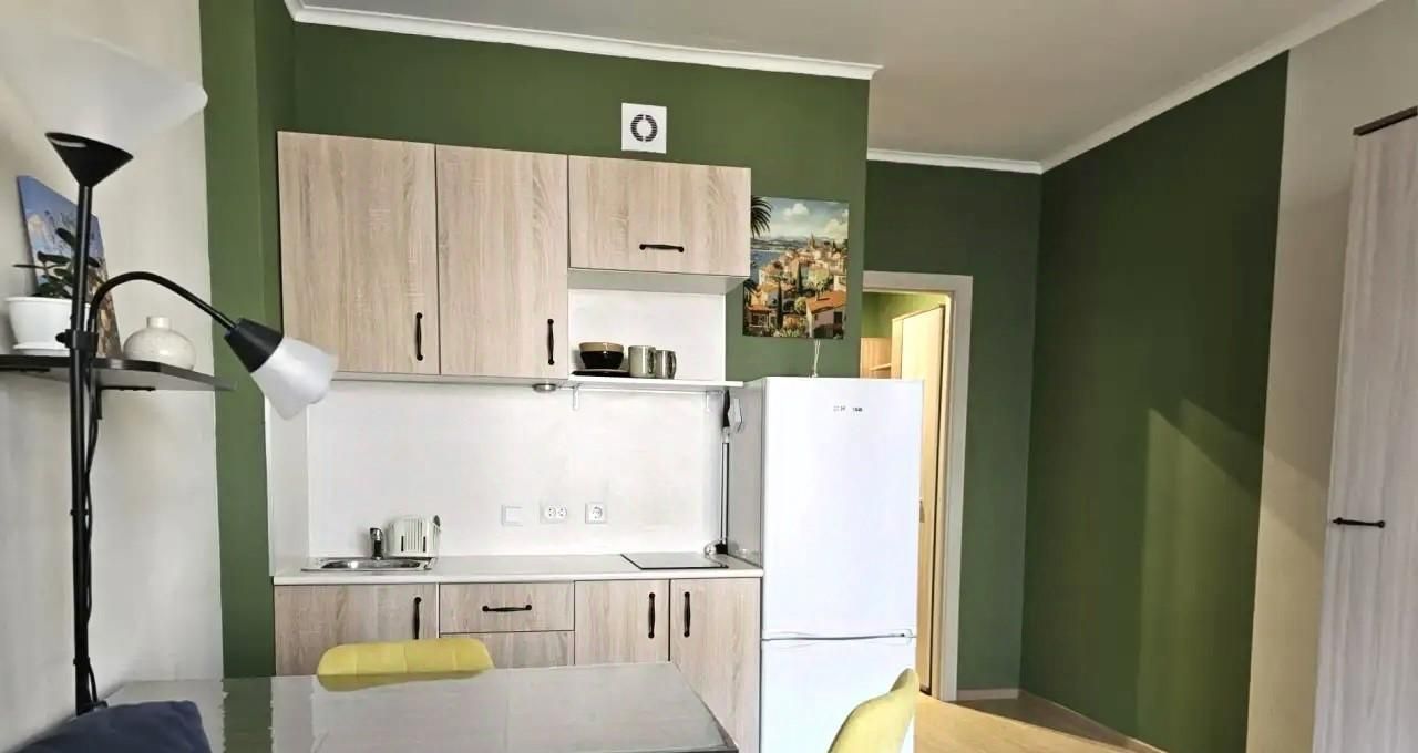 В квартире выполнен современный ремонт, что создает приятную атмосферу для проживания. Кухонный гарнитур оборудован необходимой бытовой техникой - холодильник, варочная поверхность.