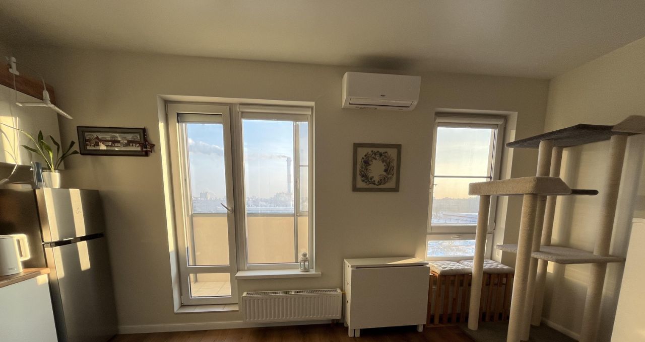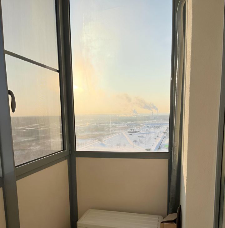 Из окон открывается вид на городские пейзажи, залив, зелёные зоны, много неба и никаких соседских окон. На балконе можно наслаждаться свежим воздухом и приятным видом. На нём расположен внешний блок кондиционера.
