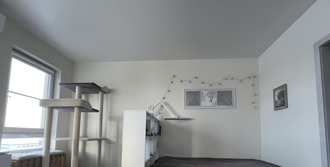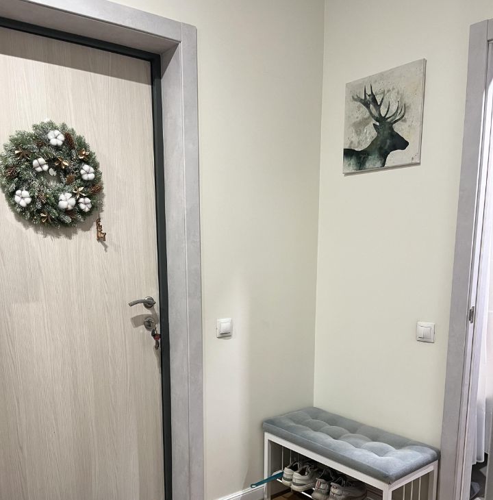 На 2 окнах установлены сетки антикошка-антимошка. Пол в комнате и коридоре из неубиваемого кварц-винила, стены окрашены финской Тиккурилой евро 20.