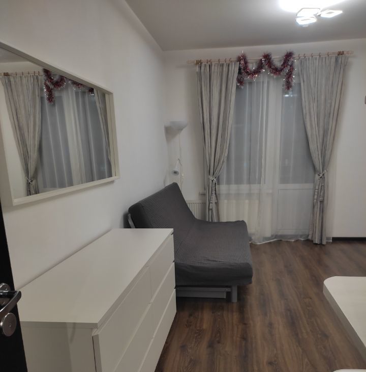 Студия полностью готовая к проживанию.Мебель,бытоввя техника.25 тыс в месяц+оплата по счетам,примерно зимой около 4тыс,летом 3тыс.