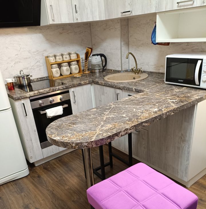 В квартире сделан качественный евроремонт. Просторное жилое пространство в 18 кв. м позволяет комфортно расположиться. В вашем распоряжении вся необходимая мебель как на кухне, так и в комнате, что делает проживание здесь особенно удобным. Совмещённый санузел оборудован ванной. Из техники в вашем распоряжении холодильник, телевизор и стиральная машина.