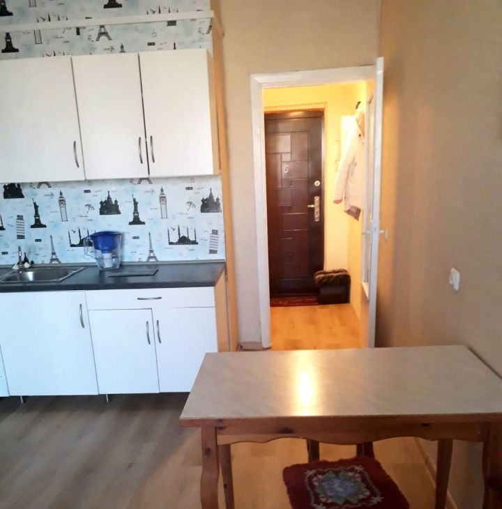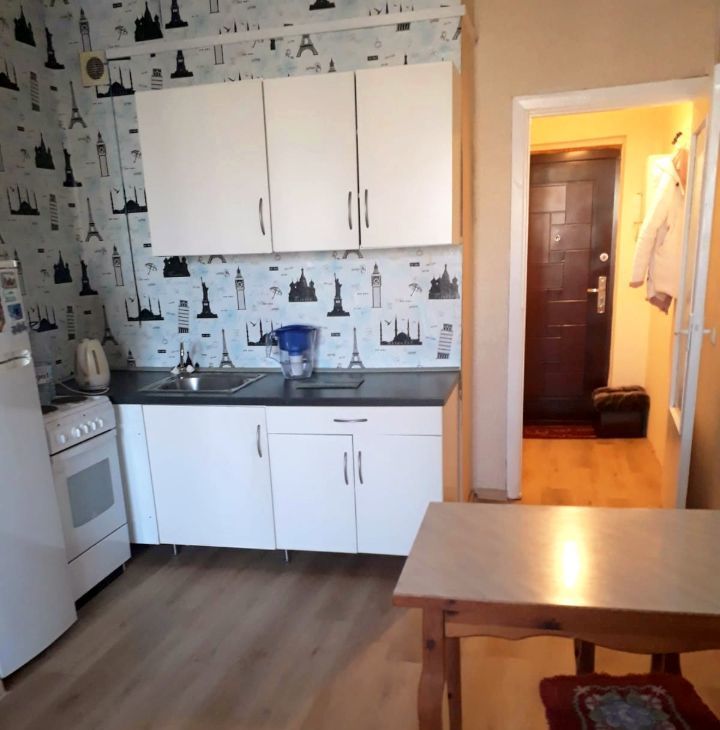 В квартире есть все необходимое для комфортного проживания. Сделан косметический ремонт, установлена мебель как на кухне, так и в комнате. Пространство спланировано таким образом, что здесь можно удобно разместить все нужные вещи. На кухне присутствуют стиральная машина и холодильник. Санузел совмещенный, имеется ванна для комфортного отдыха после тяжелого дня.