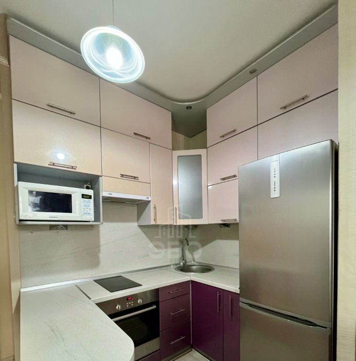 Бытовая техника: Холодильник двухкамерный, стиральная машина, микроволновая печь, плита с духовым шкафом, электрический чайник.