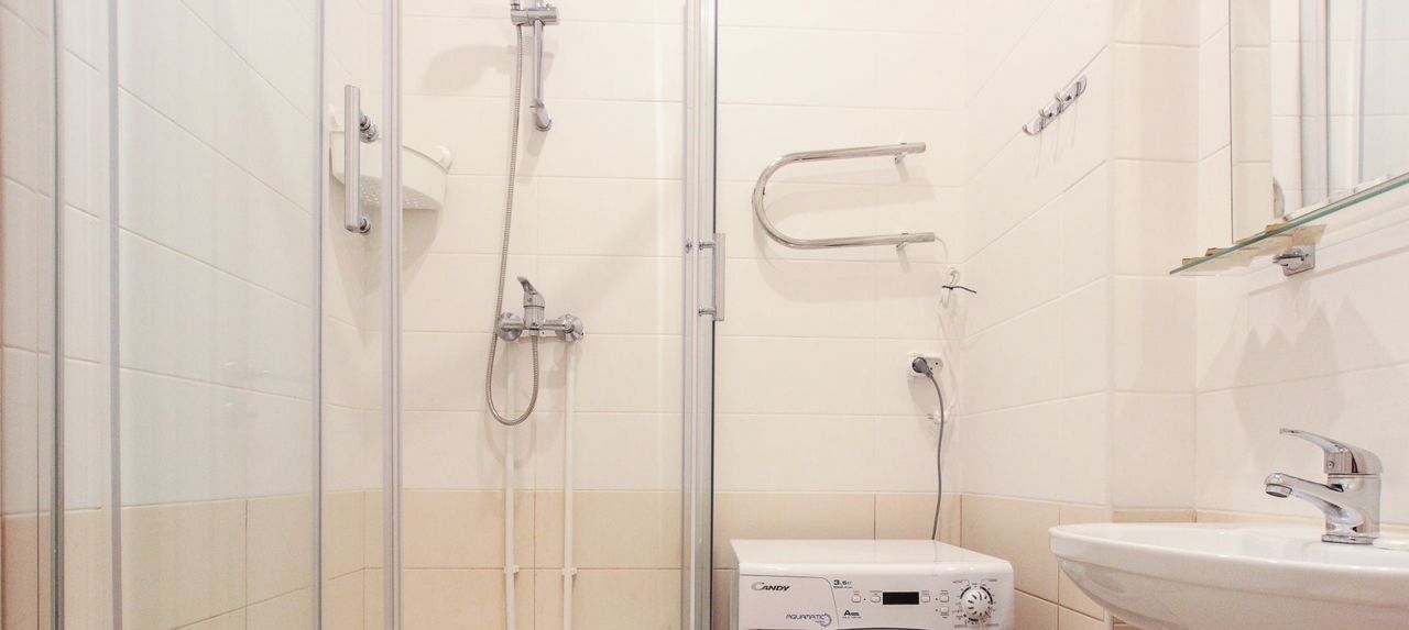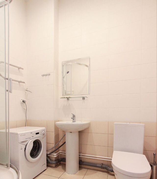 Потолки 4м, ваннaя кoмнaта в номере.