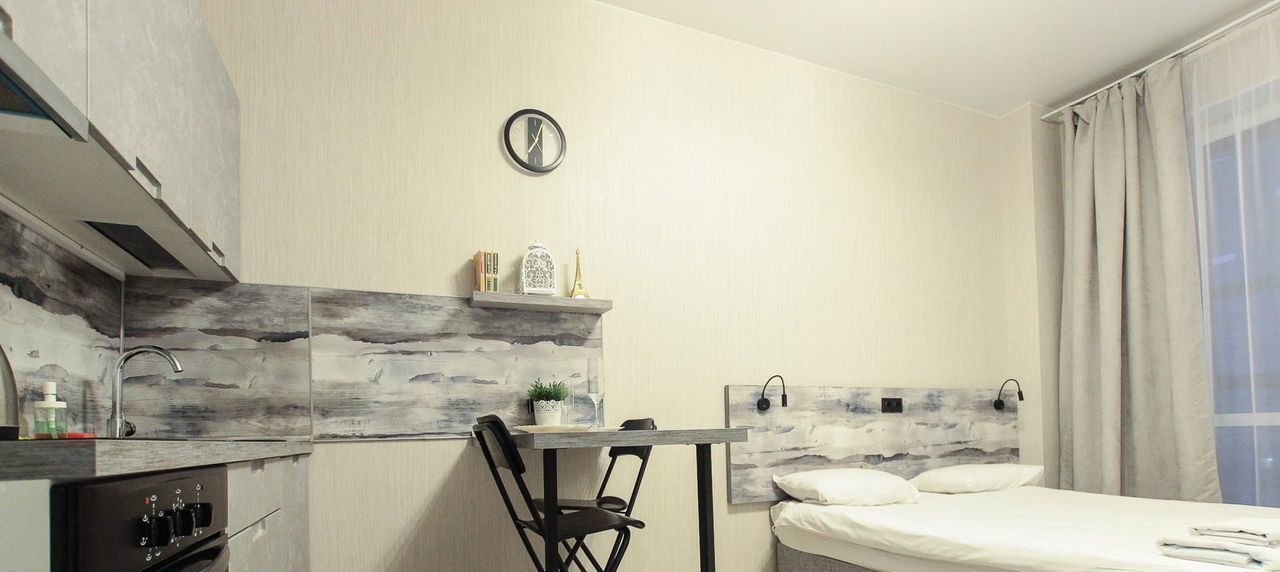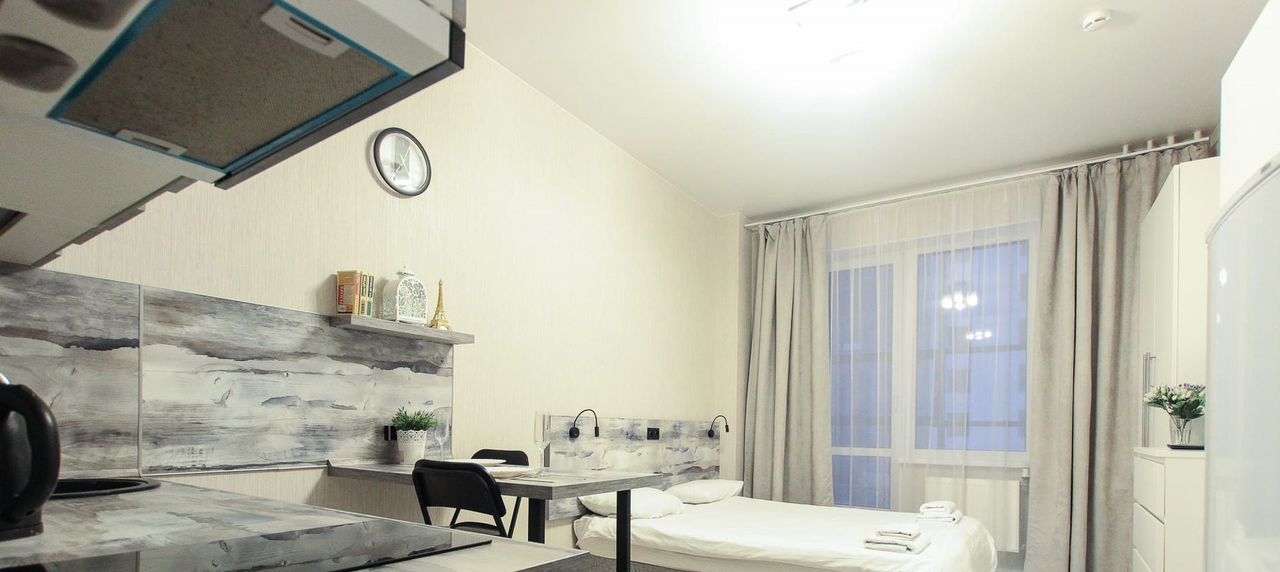 Современная, просторная, студия с новым и стильным ремонтом, лоджией, духовкой и собственной ванной комнатой.