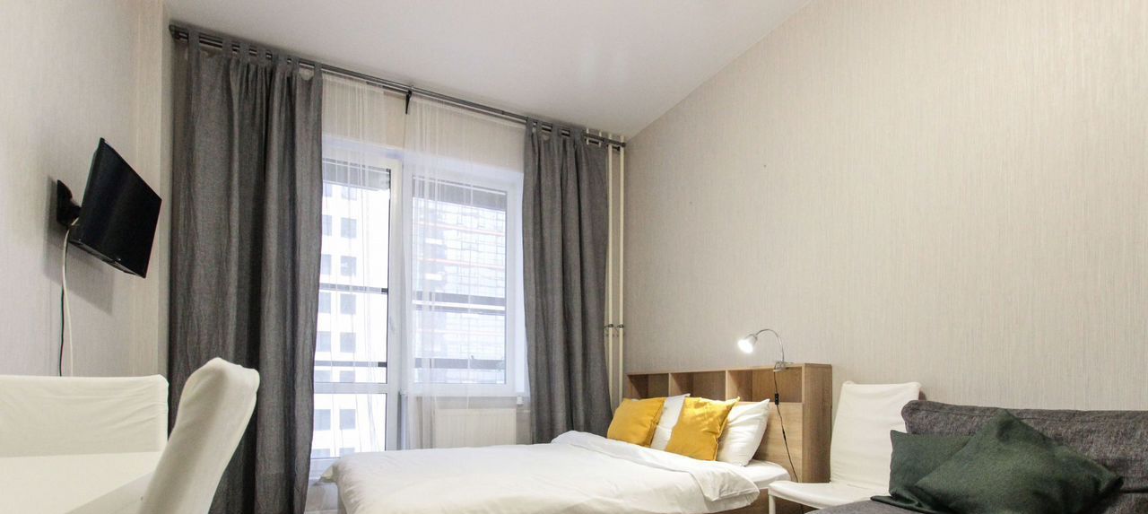 В благоустроенным и развитом районе рядом с Пулковским парком. Интерьер апартаментов выполнен в современном стиле, они обустроены мебелью с комфортом для приятного отдыха . В числе удобств имеется Wi-fi, ЖК-телевизор, собственная ванная комната.