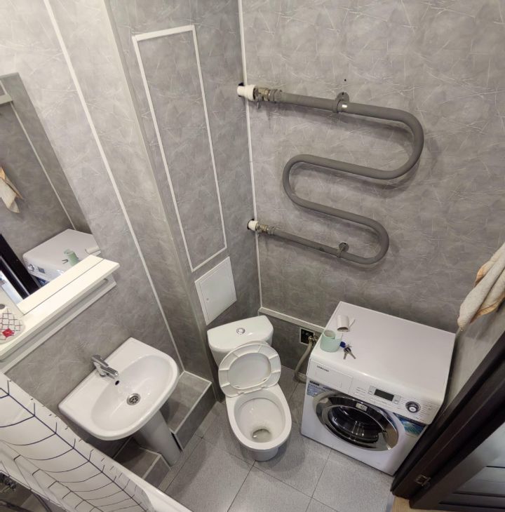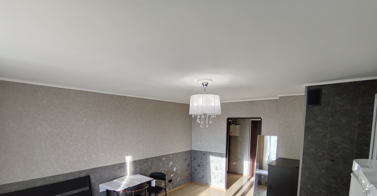 В квартире выполнен косметический ремонт, есть вся необходимая мебель как на кухне, так и в комнате. Для вашего удобства установлены холодильник и стиральная машина, а так же куплен новый матрас и подушки. Постельное белье тоже есть. Высокие потолки в 2.7 метра создают ощущение простора. Окна выходят как во двор, так и на улицу, обеспечивая отличное естественное освещение (и красивый вид на закат!! ). В ванной комнате установлена ванна, что особенно приятно после долгого рабочего дня. Светло и есть все необходимое.