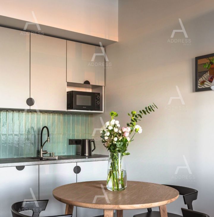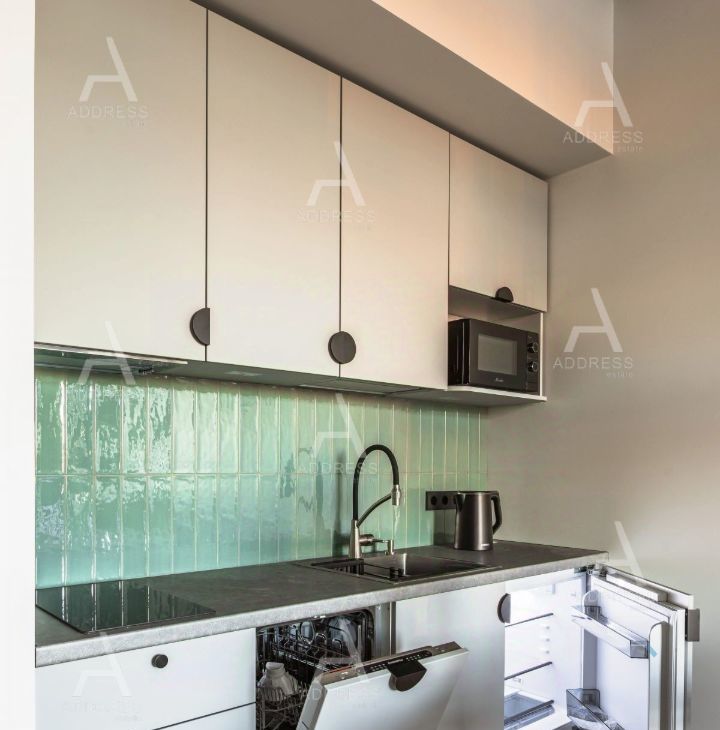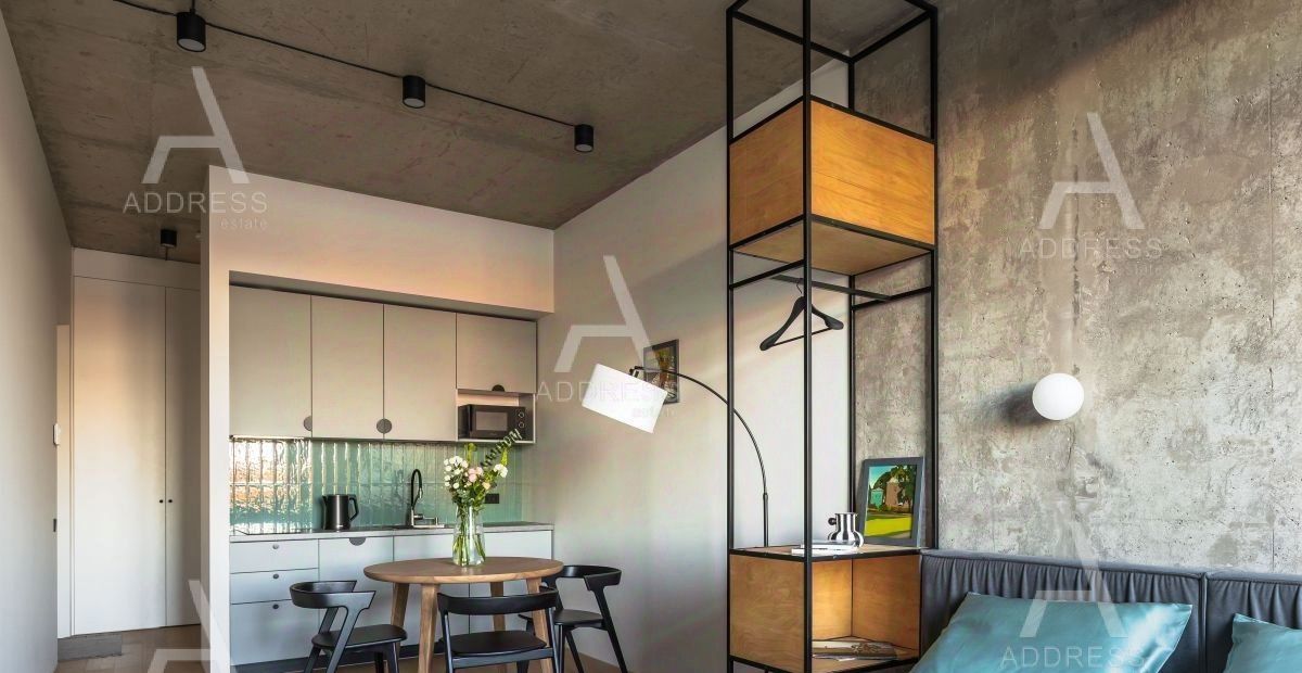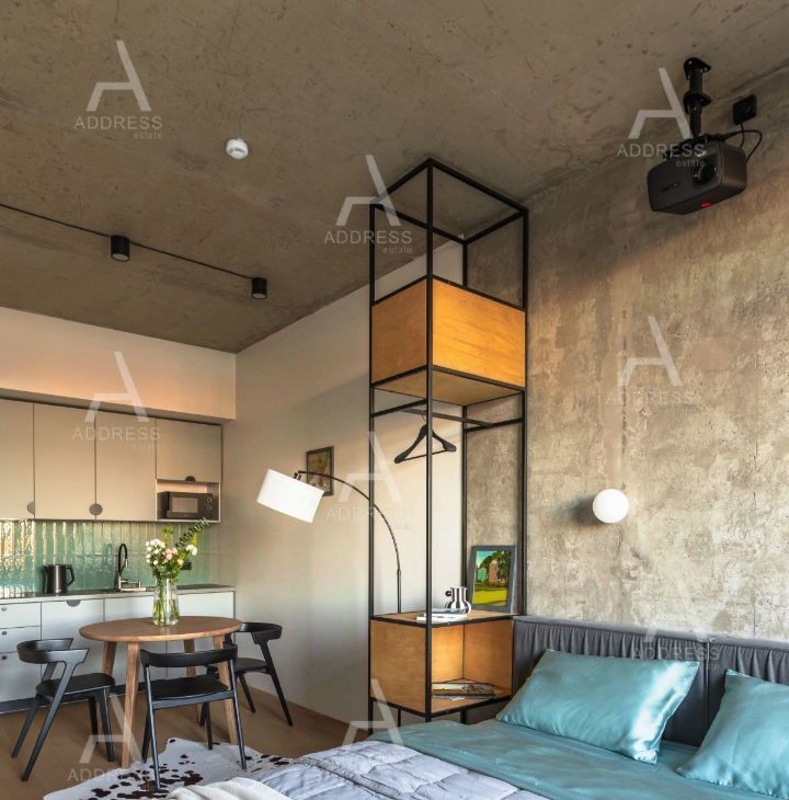 Квартира -студия с дизайнерским ремонтом, оборудована всей мебелью и бытовой техникой, установлен проектор для просмотров кино.