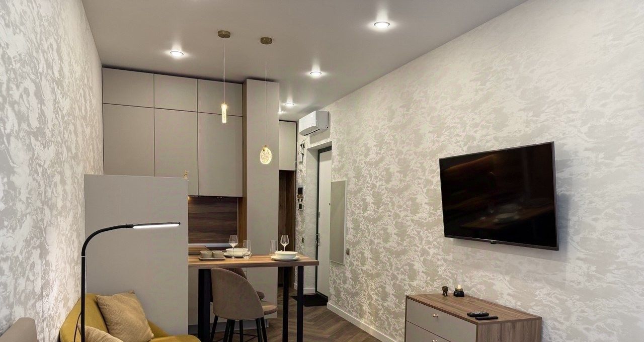 Уютная студия с продуманной планировкой и отличной локацией, идеально подходящая для комфортной жизни. Объект отличается рациональной планировкой с индивидуальным зонированием: выделена гостиная зона с диваном — редкое решение для студий, обычно объединяющих все функциональные зоны.