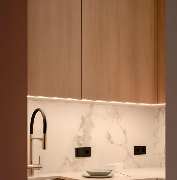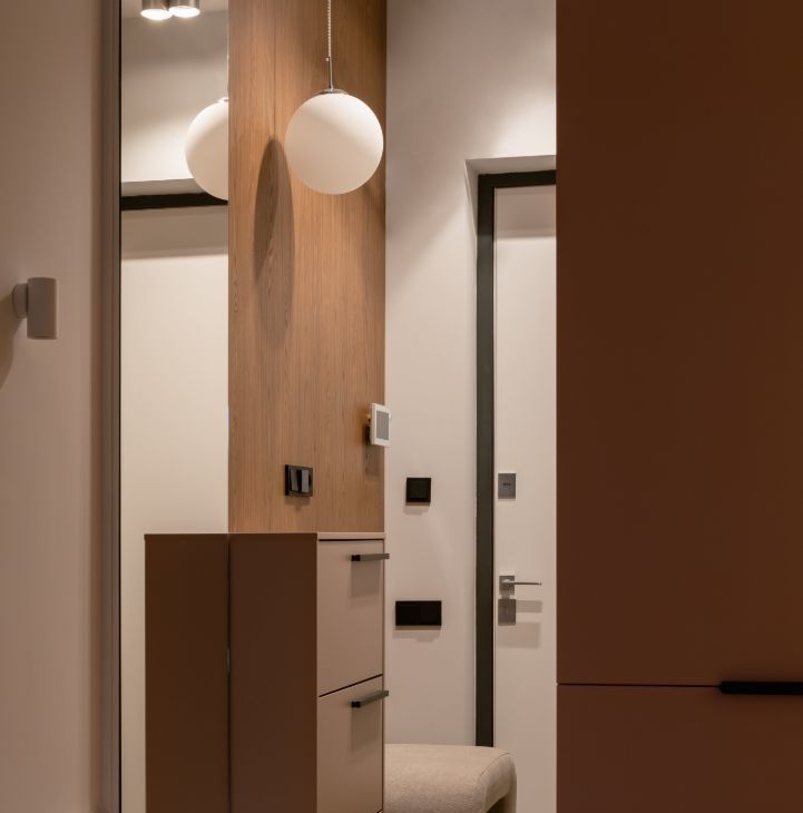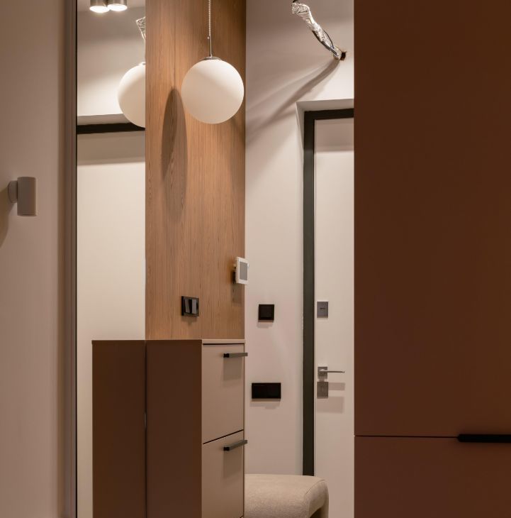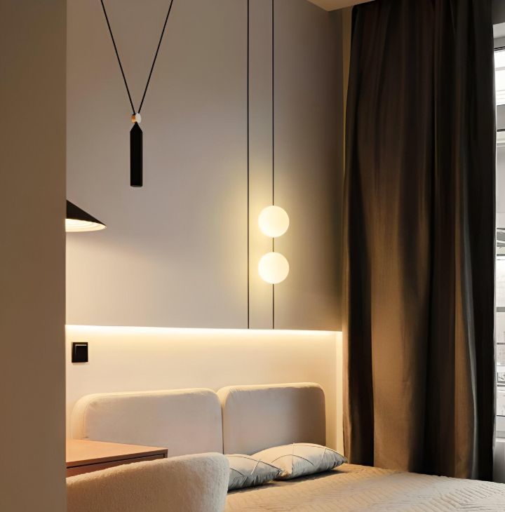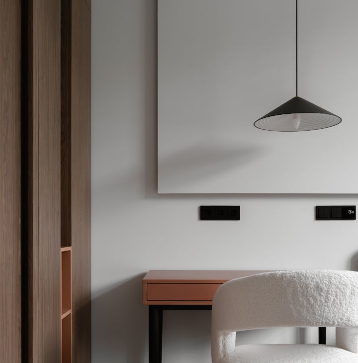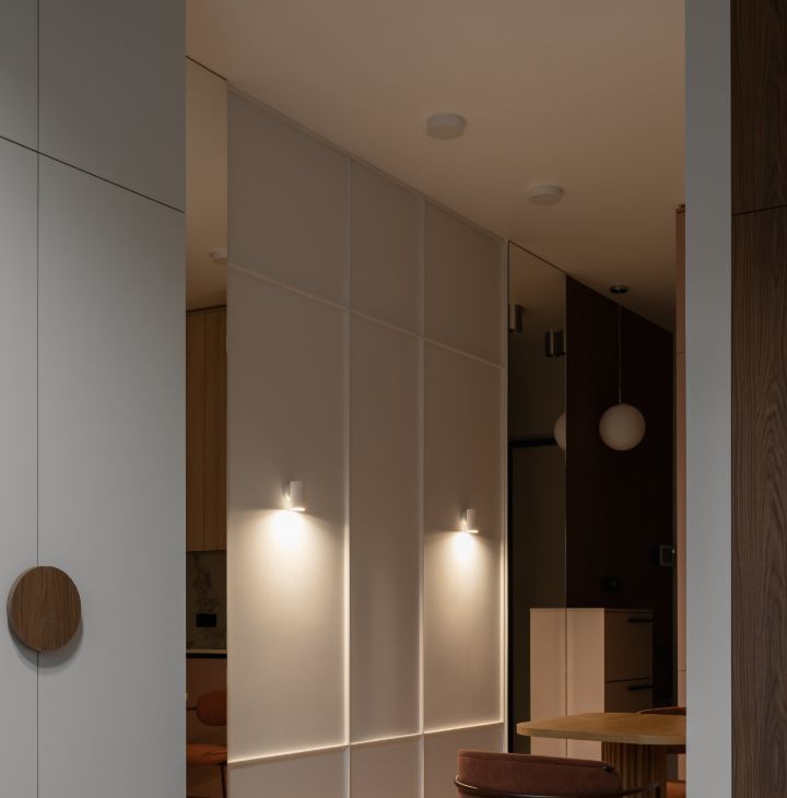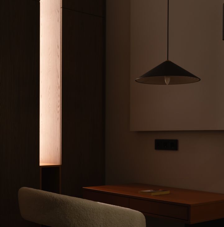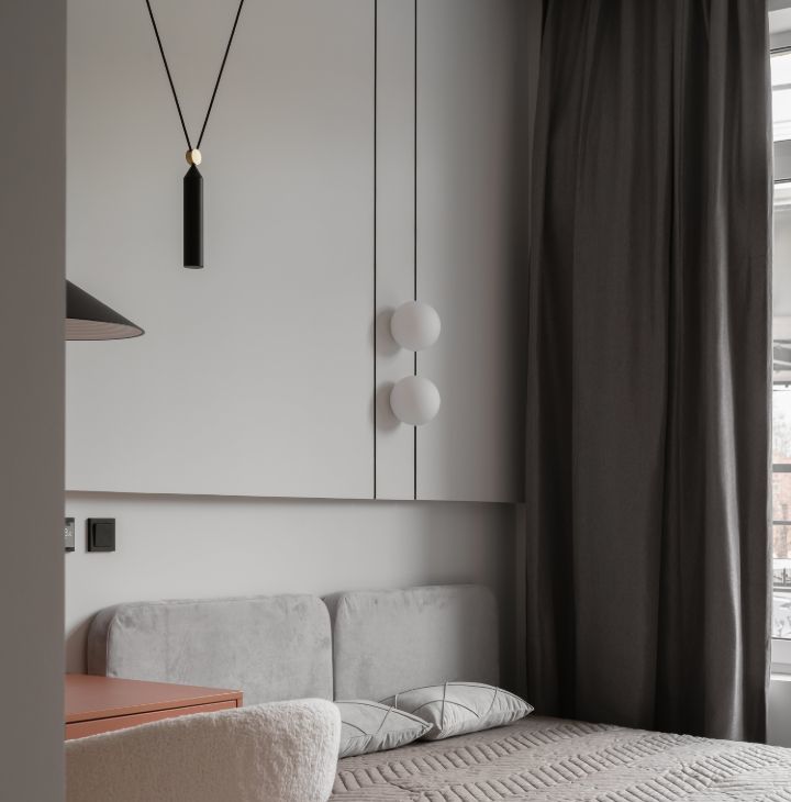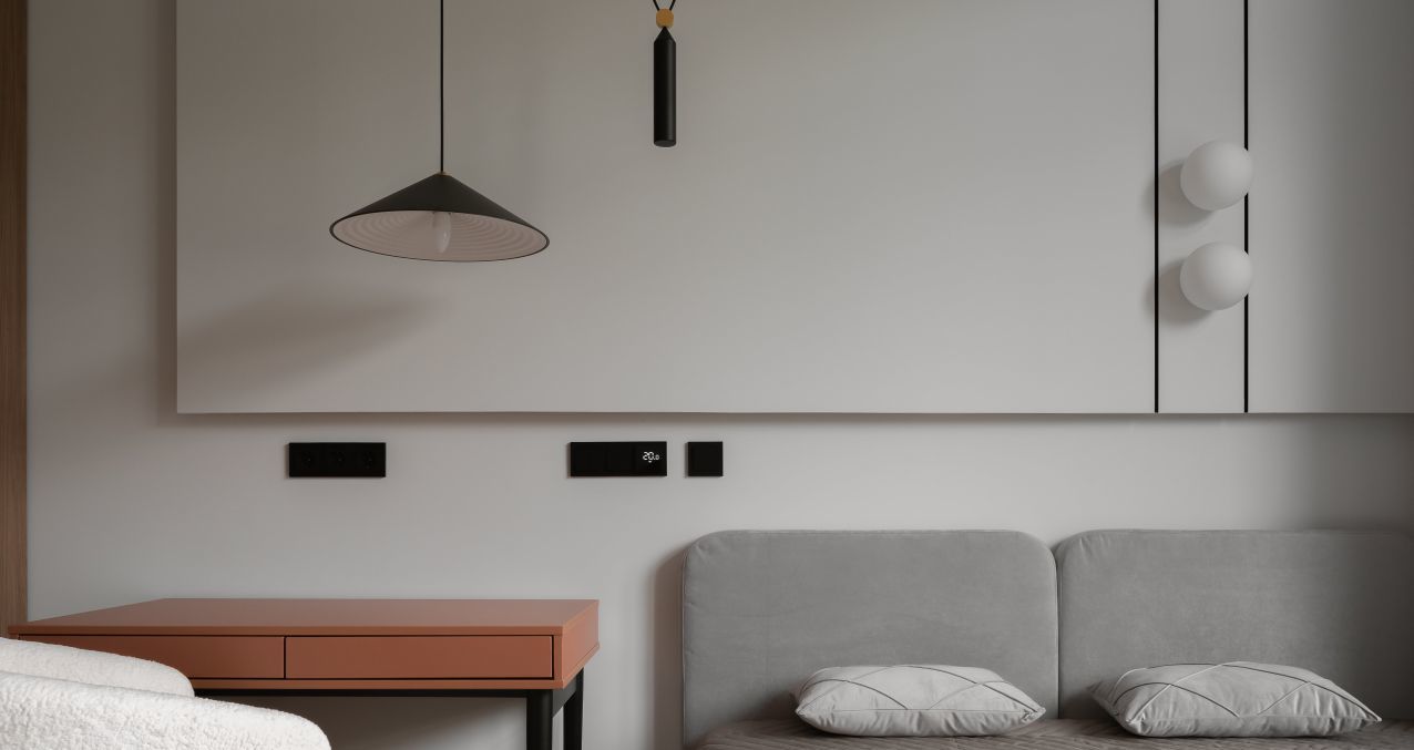Единый выключатель на входе и у кровати для всех осветительных приборов.