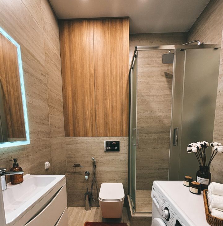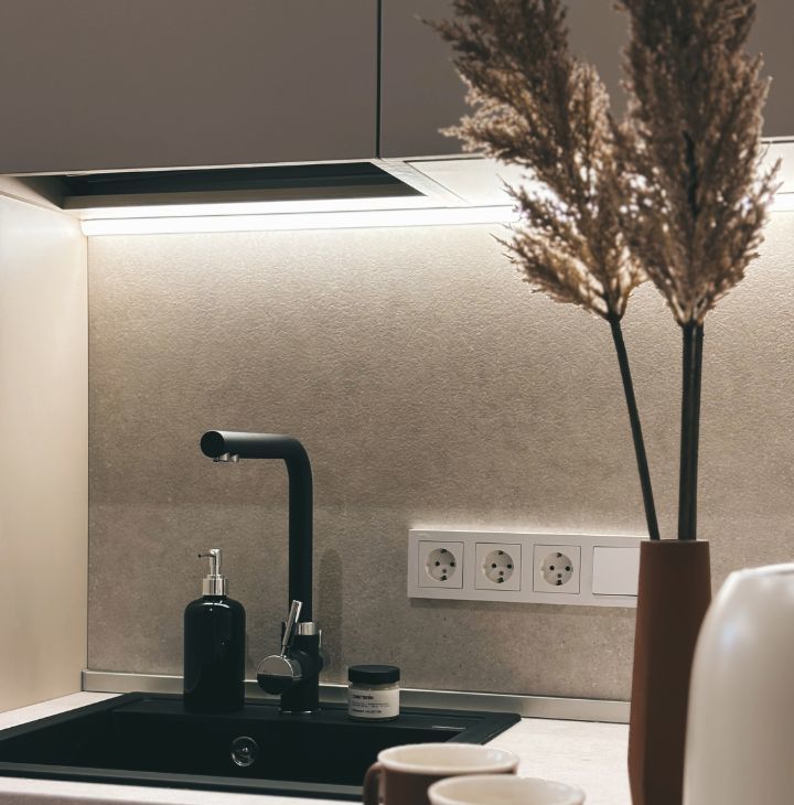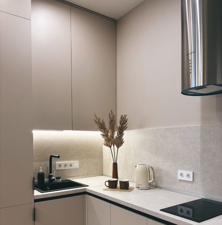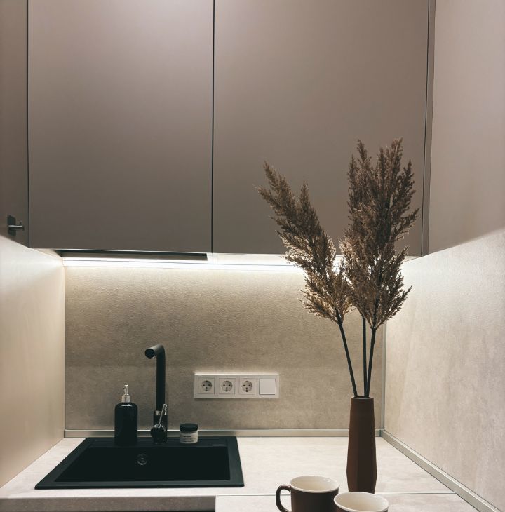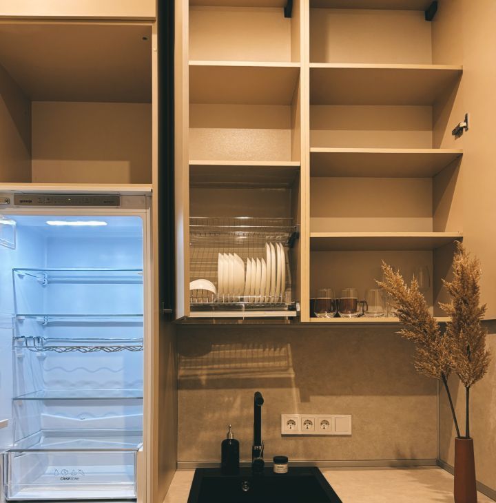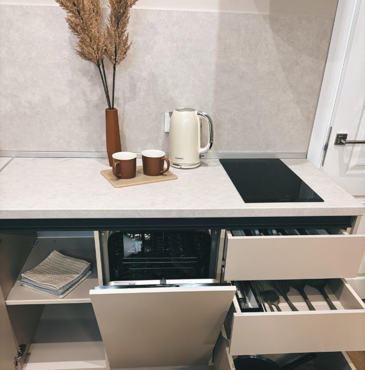 У нас есть все для того, чтобы Вам сразу заехать и жить. Кухня полностью укомплектована: индукционная плита, посудомоечная машина, чайник, встроенный холодильник, вся необходимая посуда для приема пищи и готовки. Установлены фильтры отчистки воды на кухне и в су. Отдельный кран с питьевой водой.