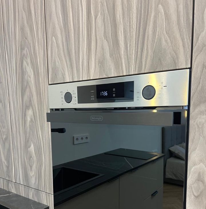 Оборудована бытовой техникой (стиральная машина с сушкой, встроенный холодильник, варочная поверхность, вытяжка, посудомоечная машина), места хранения продуманы до мелочей, в том числе и кровать с местом хранения!!!