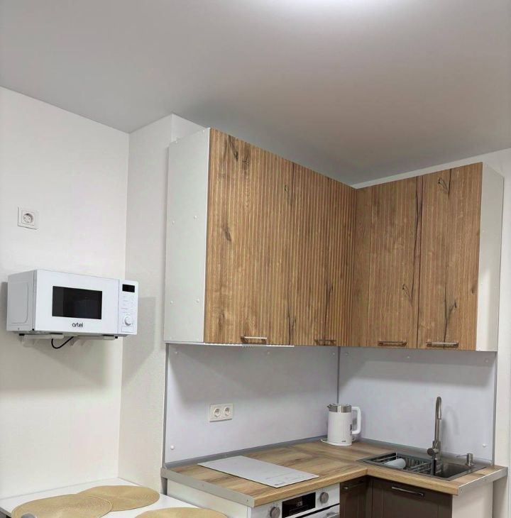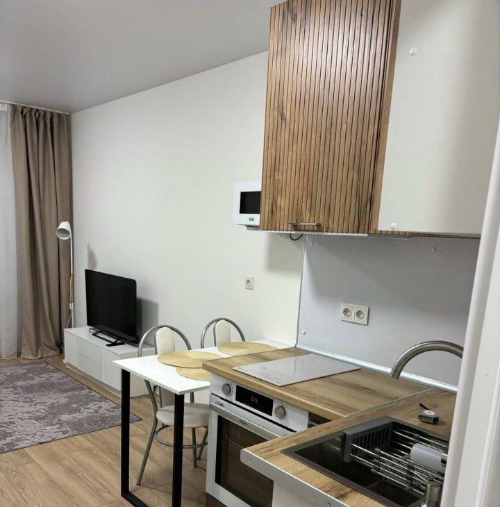 Сдается студия на длительный срок с залогом 15000 рублей. В квартире можно проживать с детьми и питомцами. Дом кирпичный, построен в 2025 году, что обеспечивает хорошую тепло- и звукоизоляцию.Квартира расположена на 9 этаже 10-этажного здания. В студии выполнен свежий евро ремонт, интерьер светлый и современный. Просторная жилая зона включает удобный диван и телевизор. Из мебели также есть вместительные шкафы.Кухня оборудована необходимой бытовой техникой: холодильник, микроволновая печь и стиральная машина. Совмещенный санузел оснащен душевой кабиной и современной сантехникой.Балкон застеклен, что позволяет наслаждаться видом из окна. В квартире подключен Wi-Fi.
