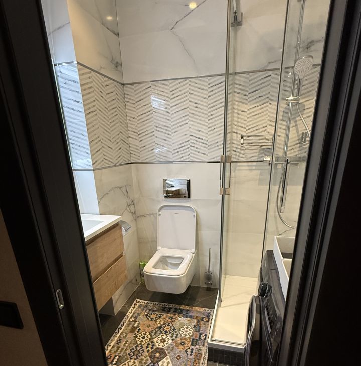- пол: немецкий кварцвинил, не боится воды и перепадов температур