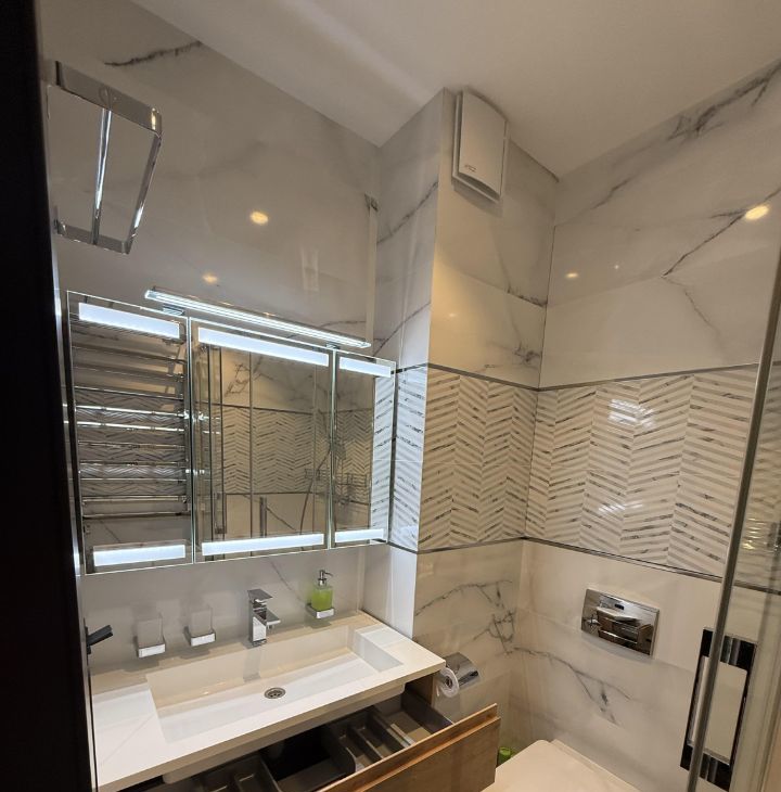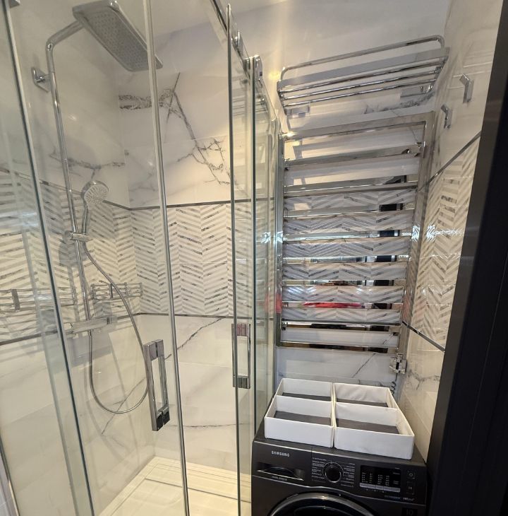 - европейская сантехника, мебель на заказ- в ванной, декор и полотенцесушитель в одном стиле
