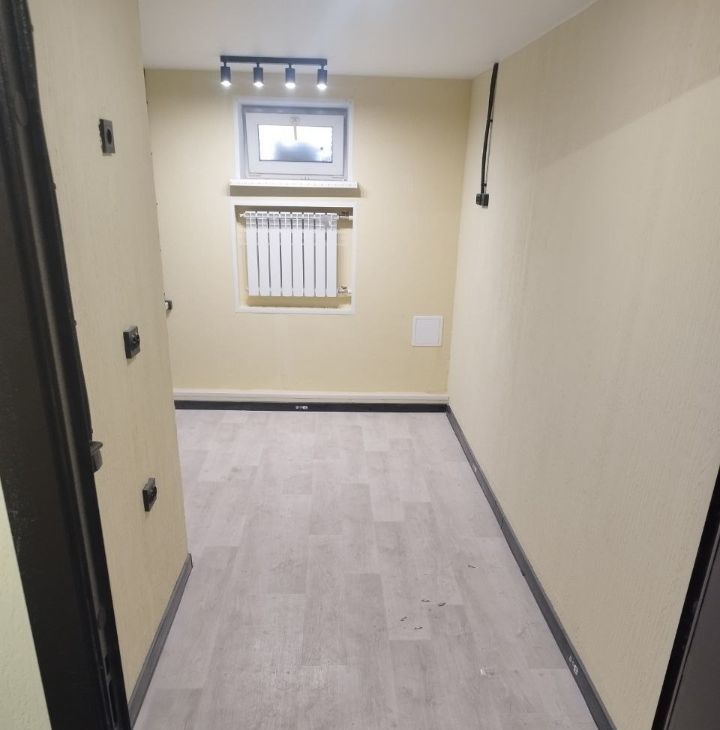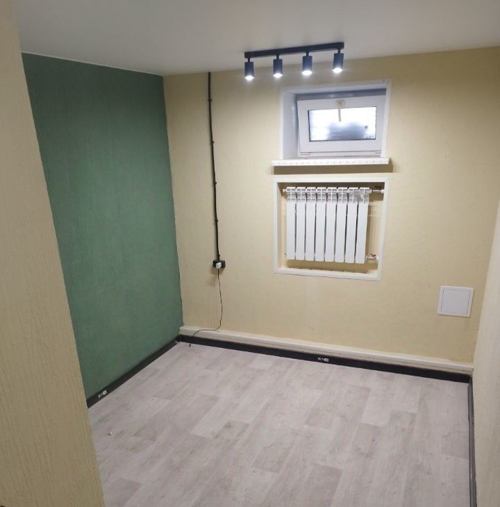 Расположена в цокольном помещении шестиэтажного кирпичного дома 1956 года постройки с отдельным входом.