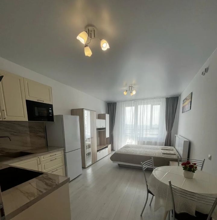 Сдаётся студия в ЖК бизнес класса ОКЛА на Суздальском шоссе 20 к. 4. В студии все новое, есть вся необходимая мебель и качественная бытовая техника. Сдаётся на длительный срок через агентство. 33500+ку (около 3000- 4000)