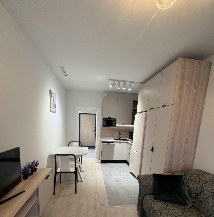 Сдаётся впервые для аккуратного человека или пары , без детей и животных новая и уютная студия в современном доме, построенном в 2024 году. Общая площадь квартиры — 24 кв. м, жилая площадь — 17 кв. м. Квартира расположена на 8-м этаже 24-этажного дома. Высота потолков составляет 2,8 метра, а окна выходят во двор, что гарантирует тишину и спокойствие.