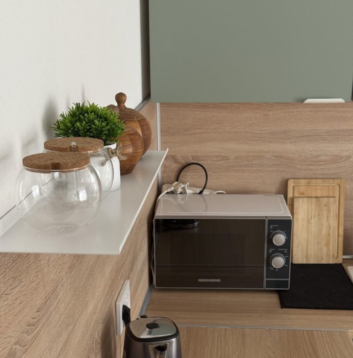• Современная техника: Холодильник, плита, СВЧ, чайник, телевизор, стиральная машина и пылесос всё для вашего комфорта.