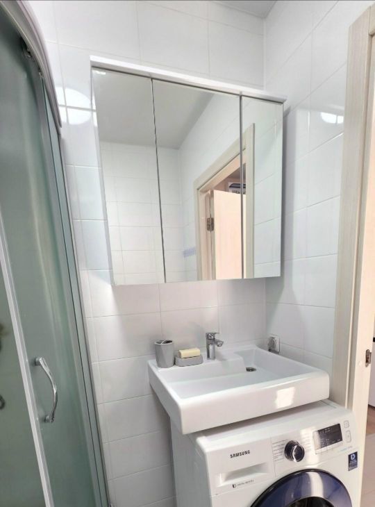 В ванной стиральная машина, душевая