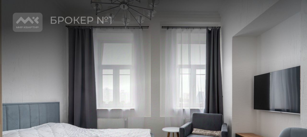 Арт. 124211796 Студия с панорамным видом на Неву в центре. Высокий потолок, свежий ремонт.