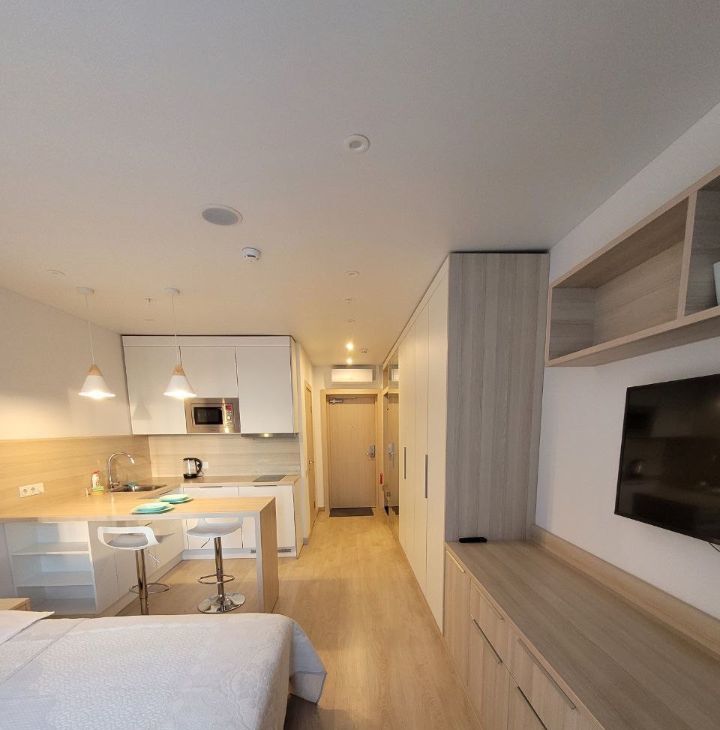 Сдается студия на кратко срок, средне срок с кроватью (ЦЕЛЬНЫМ ортопедич. матрасом 180/200, ортопедич. Подушками из пены) и КОНДИЦИОНЕРОМ (окна во внутрь на двор) в апарт-отеле Yes. От собственника, без комиссий.