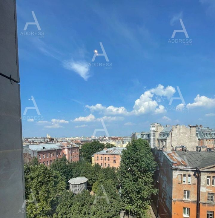 Студия площадью 27 кв.м., располагается на 7 этаже, ОКНА НА УЛИЦУ, красивый вид на крыши Петербурга, собор.