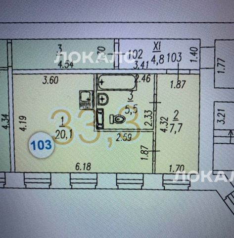 Студия Санкт-Петербург Старо-Петергофский просп., 14 (33.0 м²)