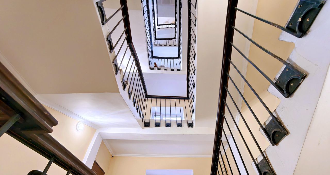 -Вид из окон последнего этажа в большой, тихий двор.