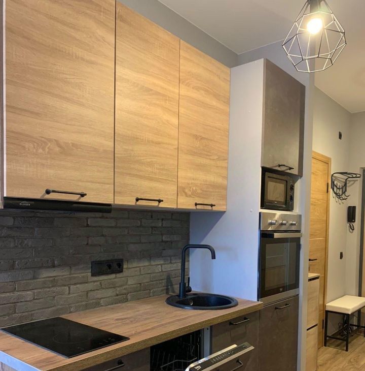 В квартире есть вся необходимая мебель и техника: холодильник, свч печь, варочная панель, вытяжка, стиральная машина, посудомоечная машина.