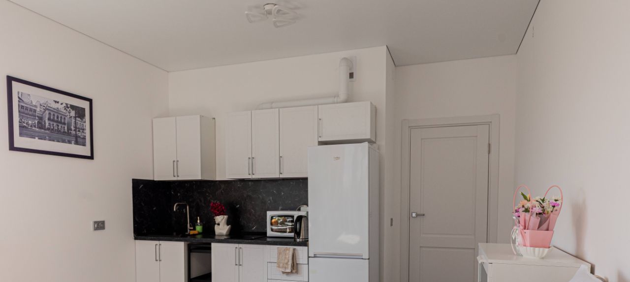 В квартире есть всё необходимое для комфортного проживания: современная мебель в комнате и на кухне, кондиционер, холодильник, телевизор и стиральная машина, сушка для белья. Ванная комната оборудована душевой кабиной, а подключённый интернет позволит всегда оставаться на связи.