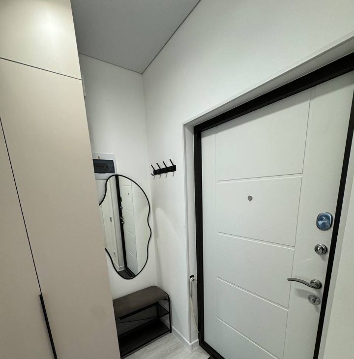 В коридоре расположен большой шкаф и интерьерное зеркало.
