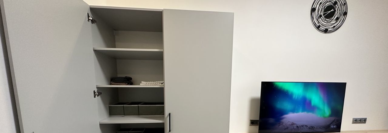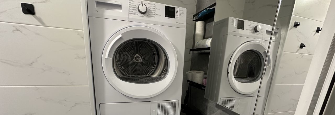 В квартире есть всё необходимое для комфортного проживания (посуда, утюг, фен для волос, вентилятор воздуха,сушилка для белья, пылесос, стиральная машина, сушильная машина для белья, печь-микроволновка, телевизор).