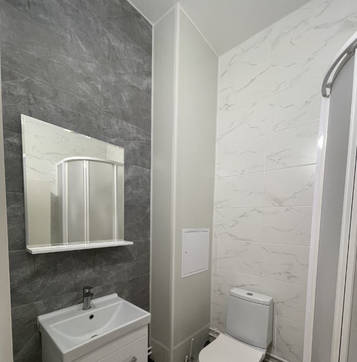 В квартире выполнен дизайнерский ремонт, есть вся необходимая мебель и техника: холодильник, телевизор и стиральная машина. Кухня оборудована современной мебелью, которая гармонирует с интерьером комнаты. Ванная комната совмещена, оснащена душевой кабиной. В квартире проведён интернет, поэтому вы всегда будете на связи.