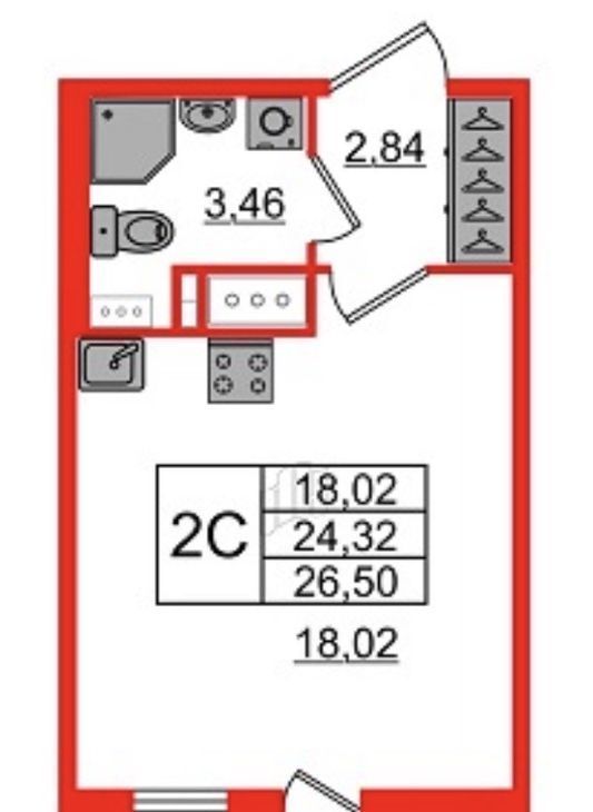 Студия Санкт-Петербург Светлановский просп., 8 (24.32 м²)