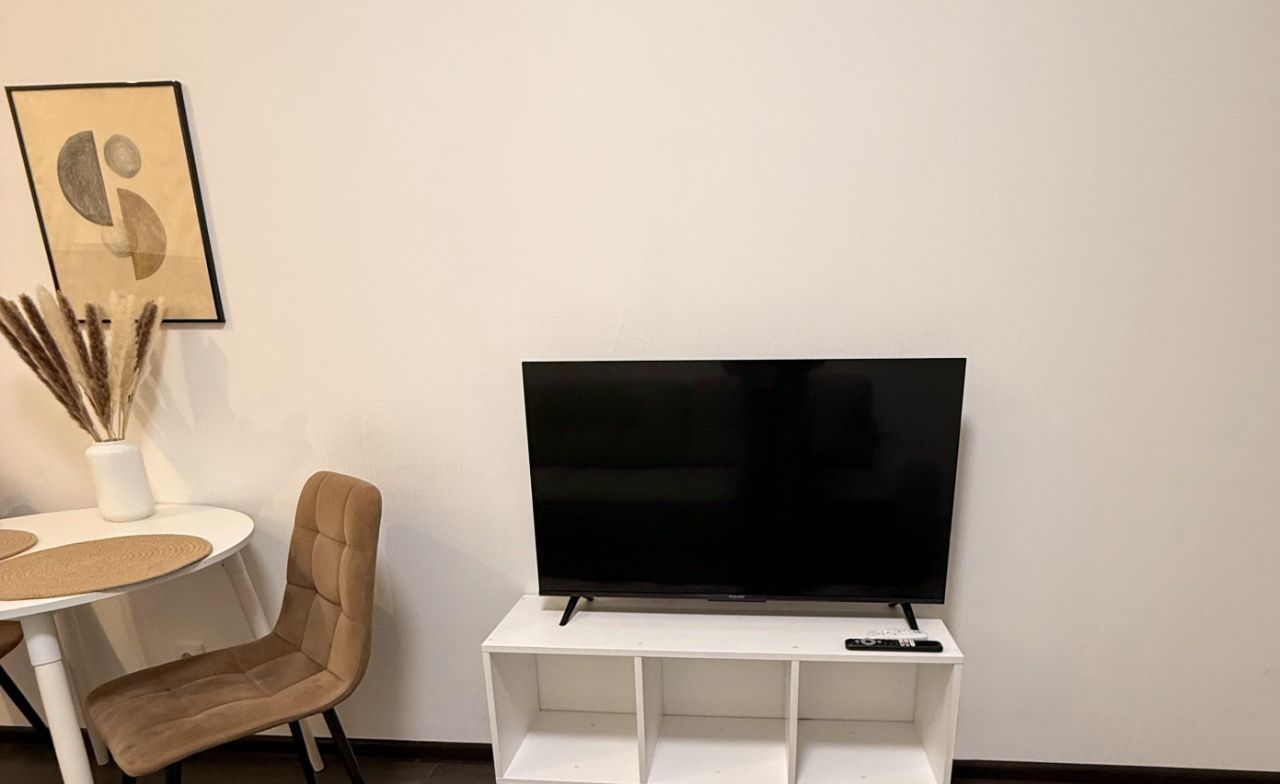Полностью укомплектована для комфортной жизни: кухня с индукционной плитой, микроволновкой, холодильником (с морозильной камерой), чайником.
