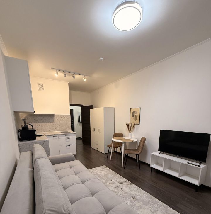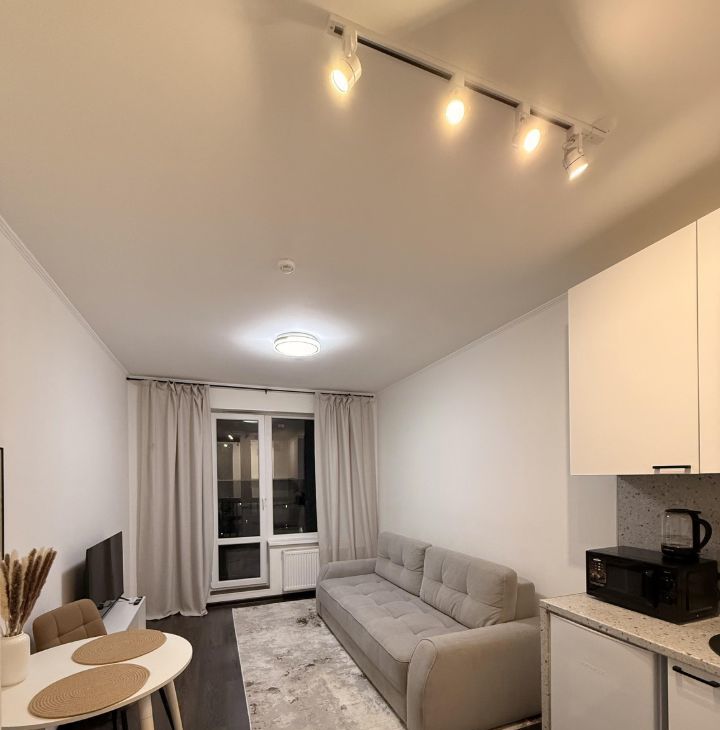 Стильная тёплая квартира-студия 28 кв. м. с дизайнерским ремонтом в современном ЖК.