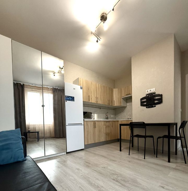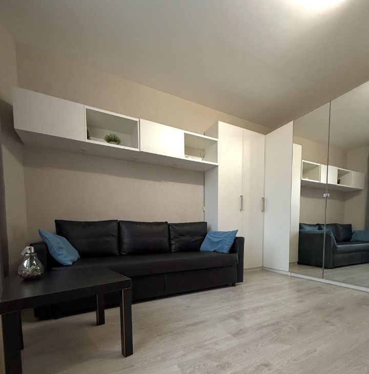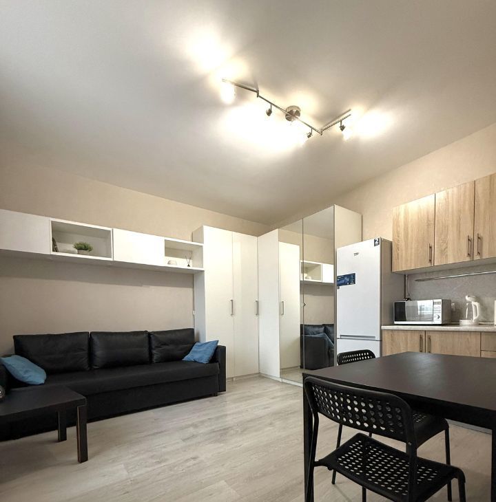 Аренда на длительный срок. Новый дом. Сдается просторная и светлая студия. Квартира оборудована всей необходимой, для комфортного проживания, мебелью и техникой. Большое количество зон хранения. Проведен интернет. На этаже всего три квартиры. При входе в парадную дежурит консьерж.
