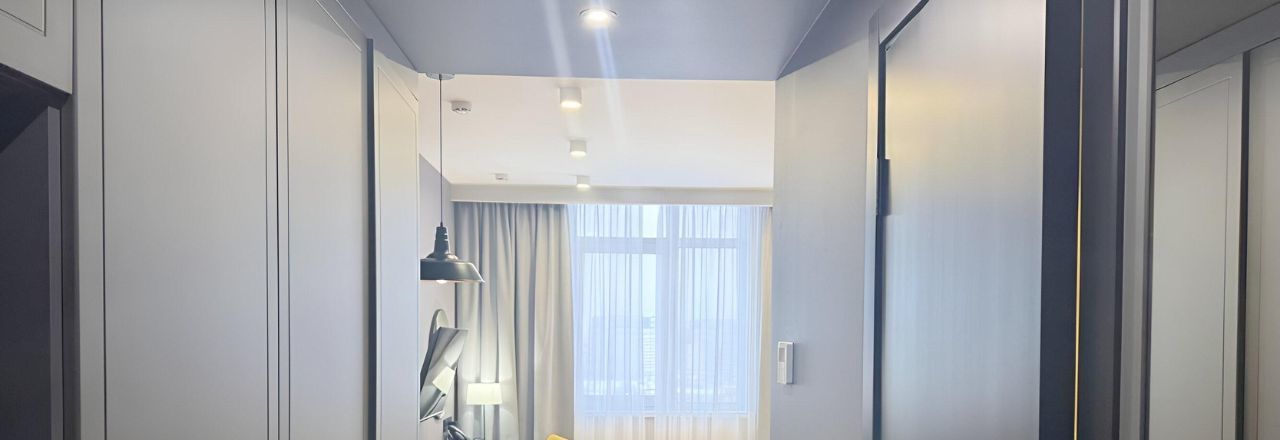 Smart TV. В коридоре установлен большой шкаф для хранения вещей, а в ванной комнате есть стиральная машина, тёплый пол и гигиенический душ.