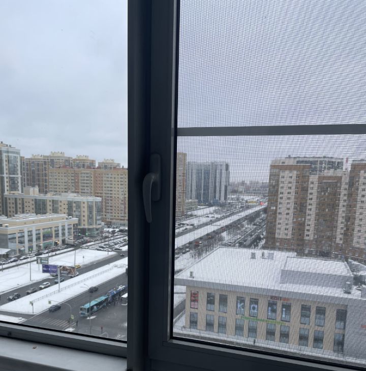 Сдается светлая студия. Вид из квартиры на перекрёсток. Лахта, метро, парк 300-летия, Юнтоловский заказник в пешей доступности. Рядом поликлиника, школа, дет сады, магазины, банкоматы- все есть..!