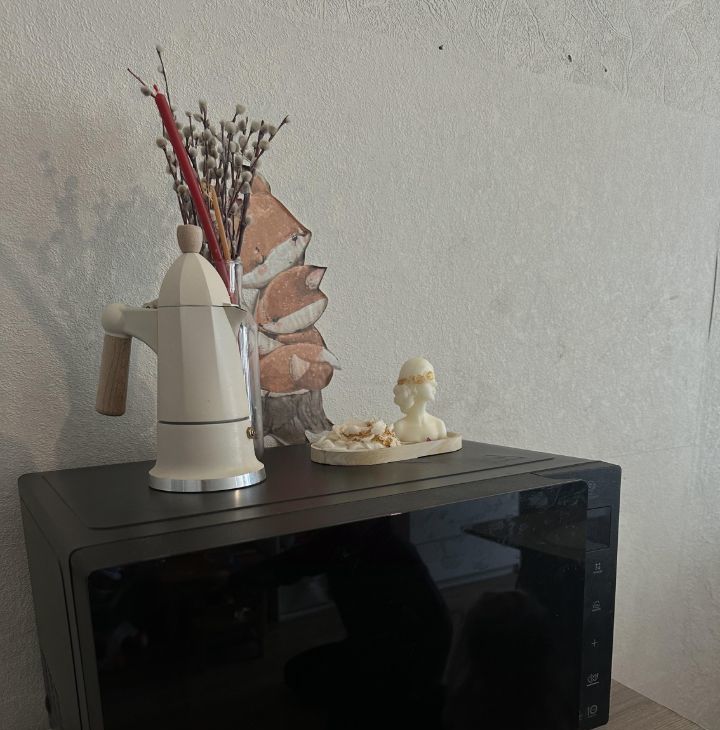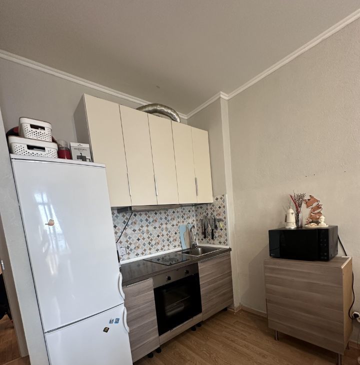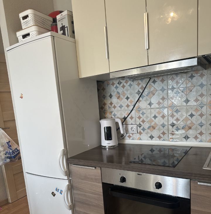 На кухне есть духовка, микроволновая печь, индукционная плита, при желании можно установить барную стойку.