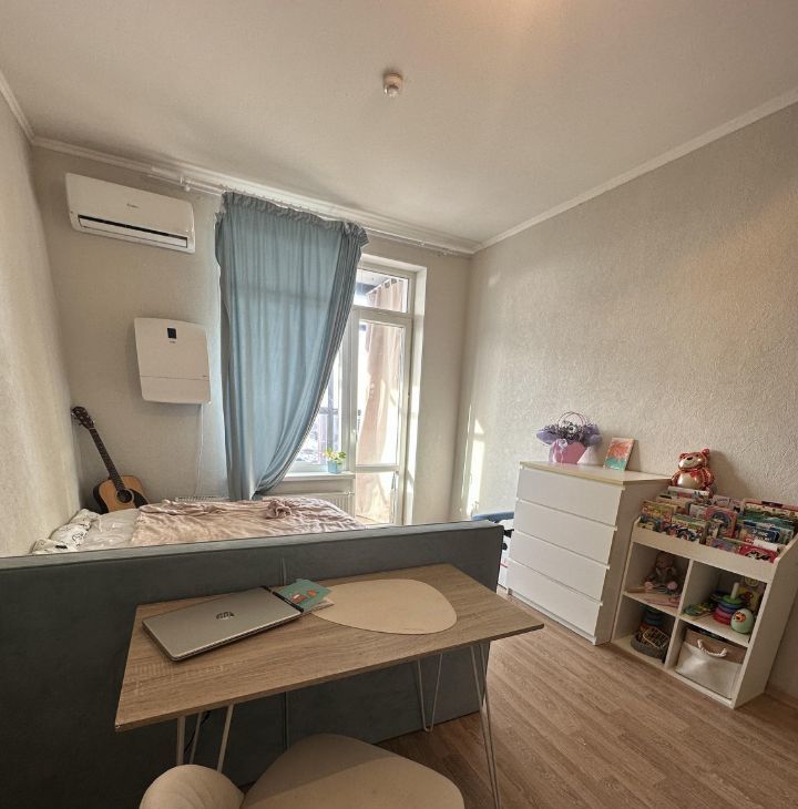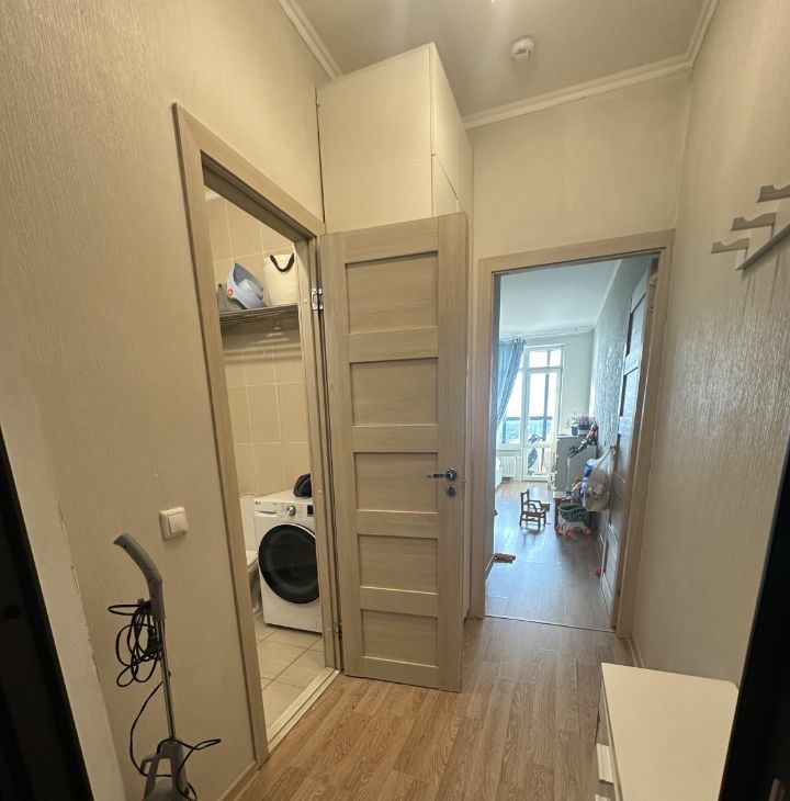 В квартире большая удобная кровать с ортопедическим матрасом, стиральная машина с сушилкой и бризер для притока чистого и свежего воздуха, для летнего периода установлен кондиционер.