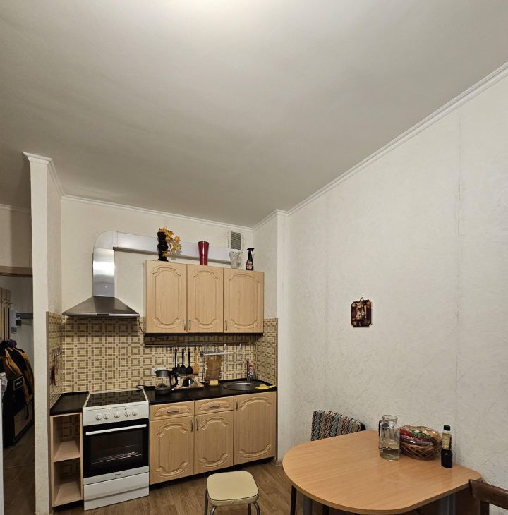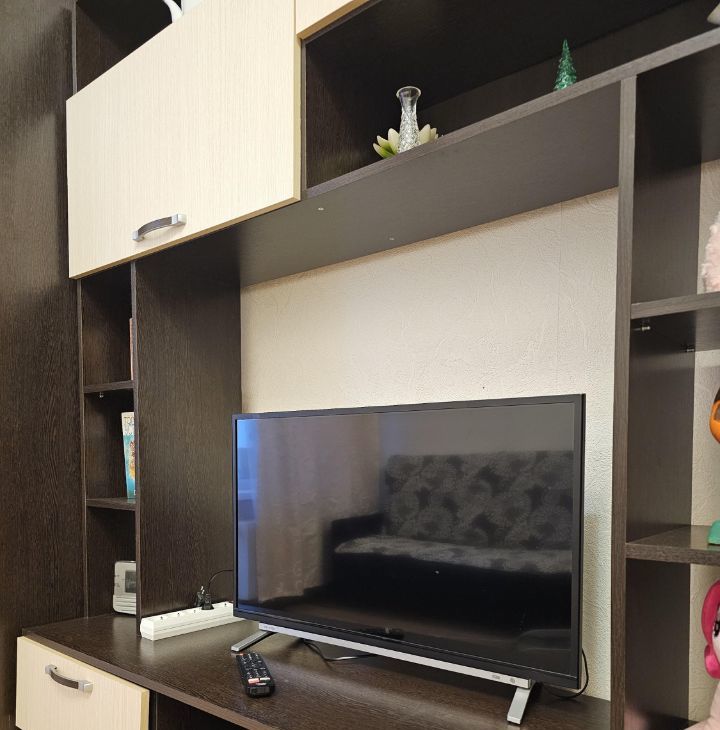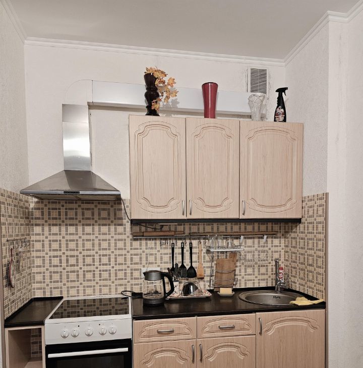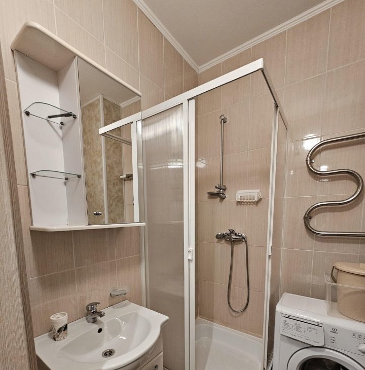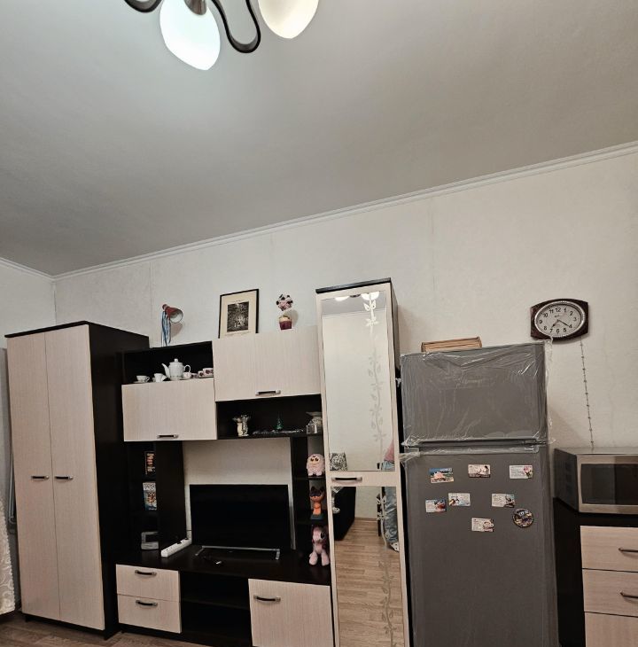 В квартире сделан косметический ремонт, что придаёт ей свежий и аккуратный вид. Студия полностью меблирована: мягкая мебель в комнате и удобная обстановка на кухне. К вашим услугам вся необходимая техника: холодильник,микроволновая печь,плита,вытяжка, телевизор и стиральная машина. Ванная комната оборудована душевой кабиной, что позволяет с комфортом принимать водные процедуры.
