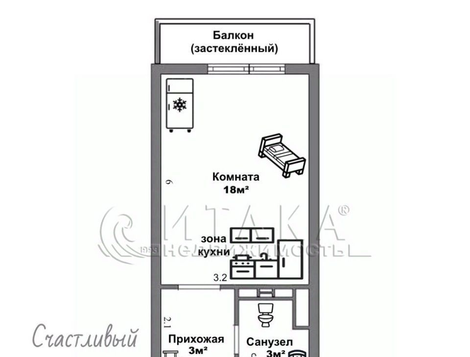 Студия Санкт-Петербург ул. Адмирала Черокова, 20 (24.1 м²)