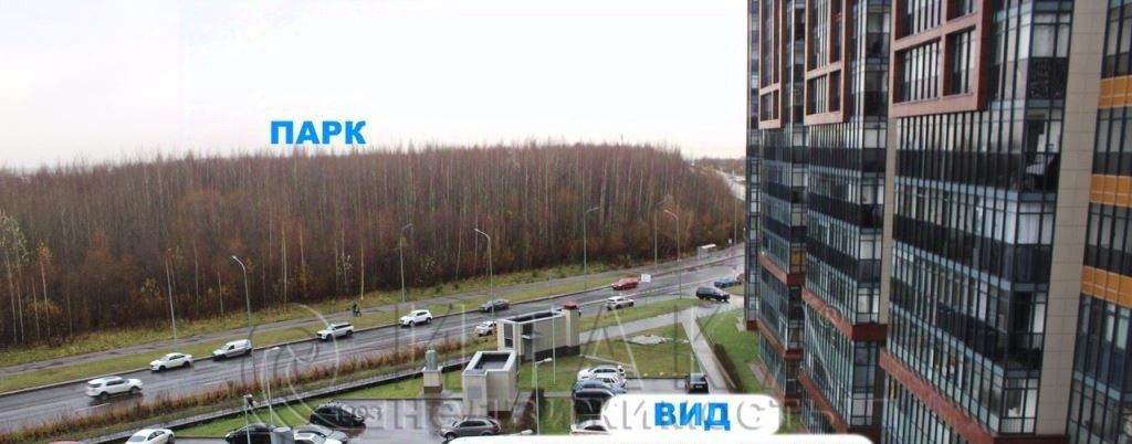 Лоджия застеклённая, но не утеплённая. С неё вид во двор - на детскую площадку. А с балкона этажа вид на парковку и лес (парк Новознаменка). За парком уже Финский залив.